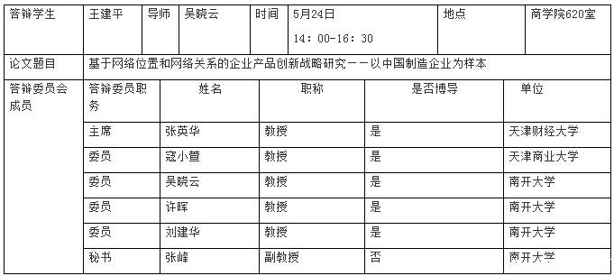 商学院博士生王建平学位论文答辩会公告