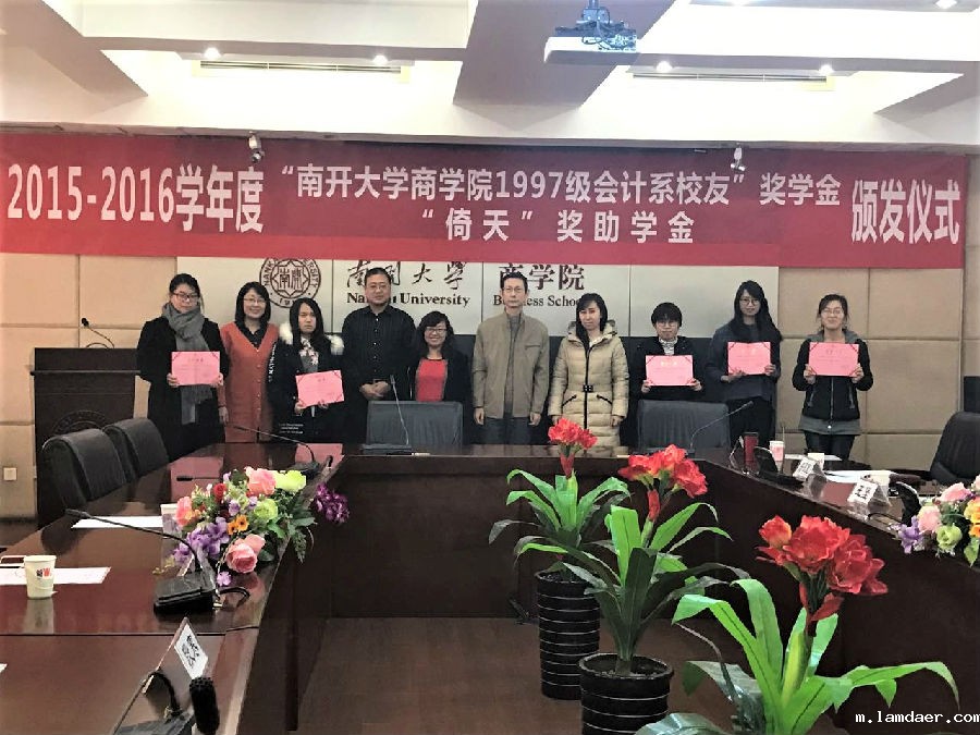 (通讯员 周翠翠 张越)12月30日,2016年“倚天奖助学金”、“1997级校友奖学金”颁奖典礼在商学院举行。倚天会计事务所总经理田春红女士、南开大学商学院党委书记孙跃出席仪式并发言,倚天会计事务所代表、南开大学1997级会计系校友代表、商学院学工办及会计系老师,奖助学金获奖学生参与此次典礼。