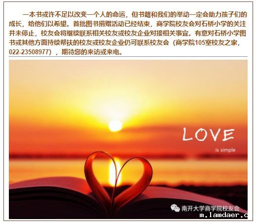 在此,感谢商学院师生及广大校友对捐赠活动的支持、对贫困山区孩子们的帮助,特别感谢刘波校友个人捐赠图书款1000元(我们已依照石桥小学马校长开列的书单全部购买图书)。