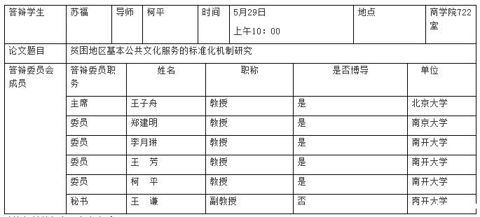 根据《南开大学关于2017-2018学年度第二学期毕业研究生论文评审及答辩工作的通知》规定,现将我院博士生苏福学位论文答辩会公告如下: