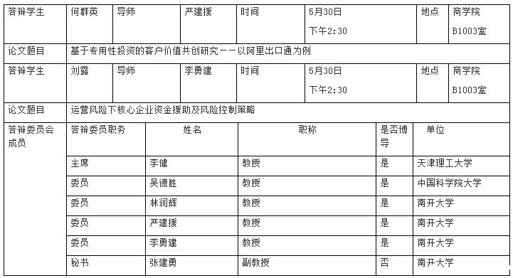 根据《南开大学关于2017-2018学年度第二学期毕业研究生论文评审及答辩工作的通知》规定,现将我院博士生何群英、刘露学位论文答辩会公告如下: