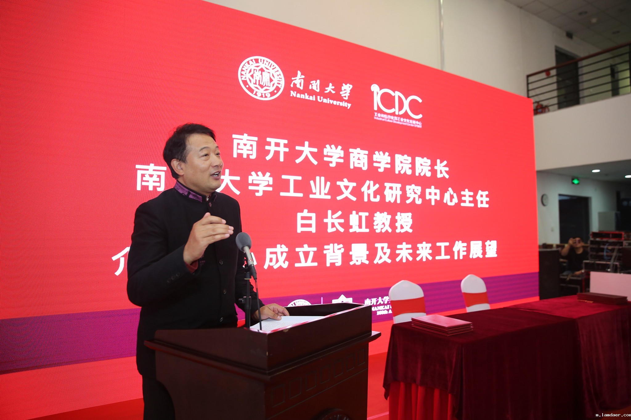 南开大学商学院院长、南开大学工业文化研究中心主任白长虹介绍了中心成立背景,并展望了中心愿景和发展规划。他指出,南开大学工业文化研究中心以习近平新时代中国特色社会主义思想为指导,传承南开百年商科“商以富国”的崇高使命,服务“知中国服务中国”的教育宗旨,瞄准“双一流”建设目标,力争建成聚焦工业文化发展主题,集研究、咨询、培训、交流及国际合作于一体的跨学科、跨领域协同创新中心。