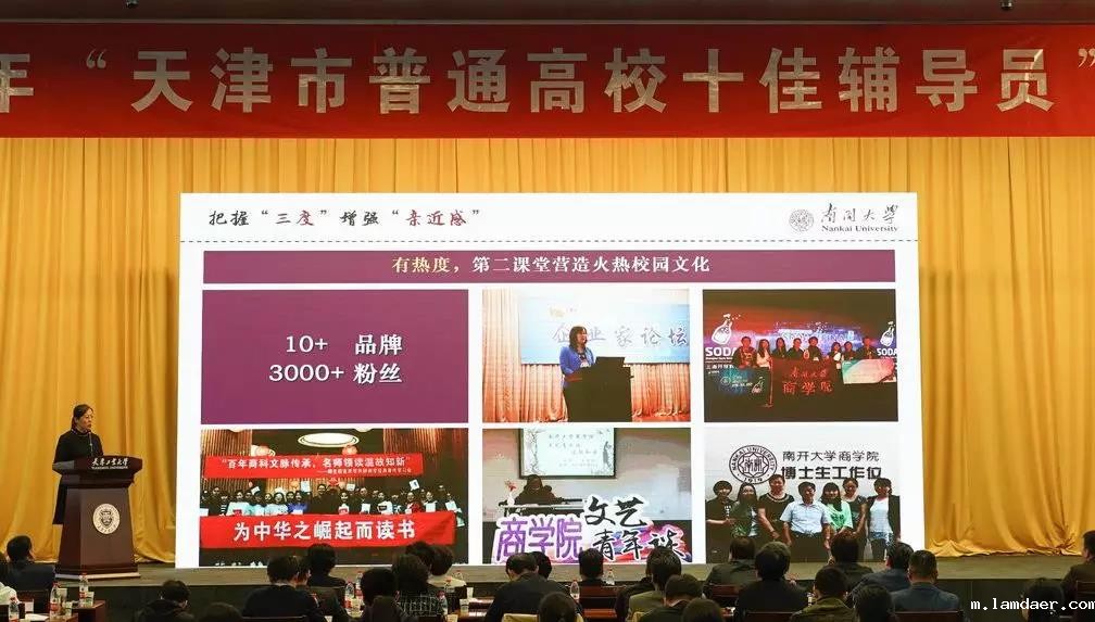 2019年天津市普通高校十佳辅导员评审会,商学院辅导员木琳以“树·人”为主题进行展示,并以高分获评天津市十佳辅导员。她秉初心把握“三度”增强学生亲近感,担使命提升“三能”增强学生获得感,有作为落好“三子”增强学生认同感,成为新时代幸福的高校辅导员!