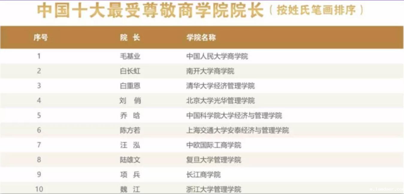 近日,由世界企业家集团、《总裁》杂志社联合编制的2020年“中国十大最受尊敬商学院院长”与“中国十大最受尊敬商学院教授”榜单在上海发布,南开大学商学院白长虹教授荣获“中国十大最受尊敬商学院院长”称号,韩德昌教授荣获“中国十大最受尊敬商学院教授”称号。