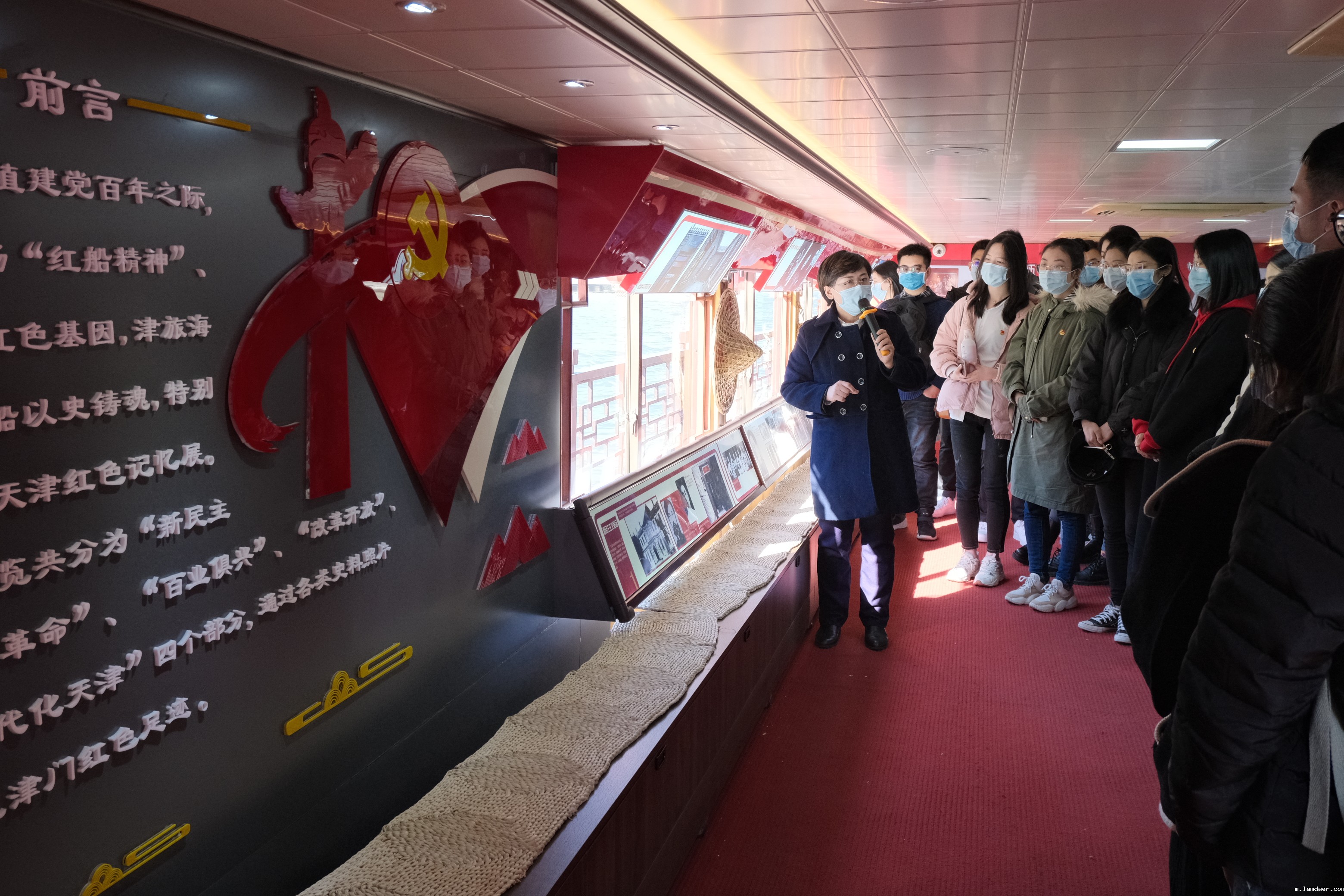 (通讯员 张翔宇 毕媛)为加强党史学习教育,感悟和传承伟大的建党精神,商学院充分用好红色资源,教育引导师生导员赓续红色血脉,做到学史明理、学史增信、学史崇德、学史力行。近日,商学院学生党总支组织新生党员和党员骨干赴海河游船流动展馆参观“海河上的天津红色记忆展”。
