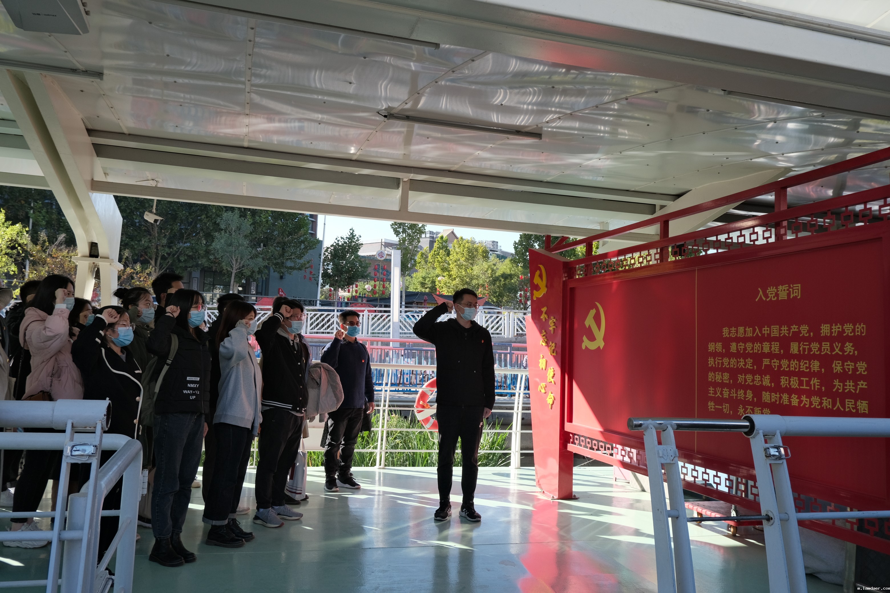 “海河上的天津红色记忆展”共分为“新民主主义革命”、“百业俱兴”、“改革开放”、“现代化天津”四个部分。在海河波光映照下,学生党员观看各类史料照片,聆听讲解员讲述南开最优秀校友周恩来在觉悟社探求真理、刘少奇在中共中央北方局开展工作等发生在海河沿岸的红色故事。通过学习,党员们深入了解了天津的红色历史,感受到在党的领导下天津的飞速发展。