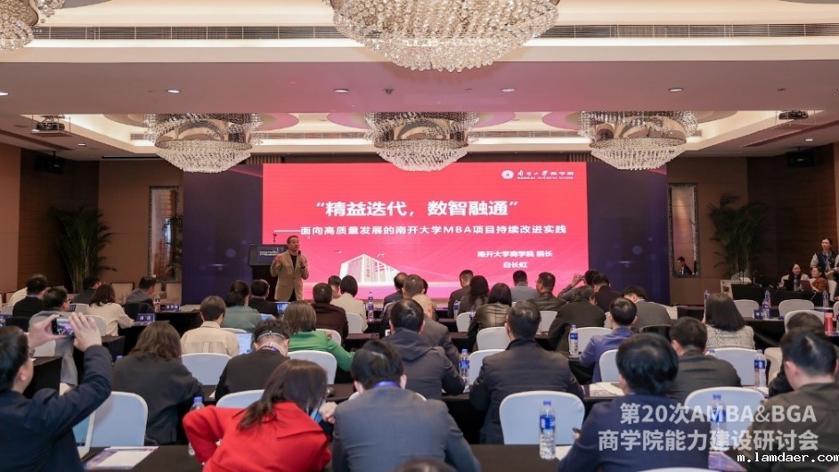 南开大学商学院院长白长虹教授、专业学位教学中心副主任梁峰副教授、专业学位教育中心主任陈琰博士受邀参加研讨会。白长虹院长在能力建设策略发言环节进行了《“精益迭代,数智融通”—面向高质量发展的南开大学MBA项目持续改进实践》主题分享,分享内容得到了与会嘉宾的热烈反响与深切认同。