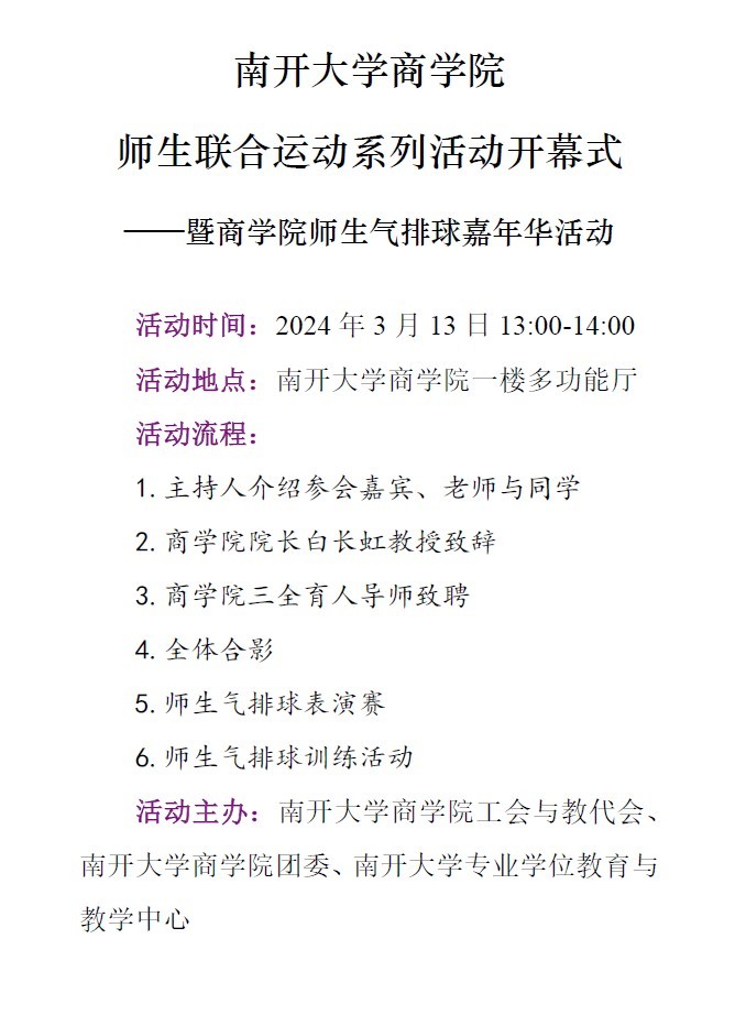 商学院师生联合运动系列活动开幕式暨商学院气排球嘉年华活动