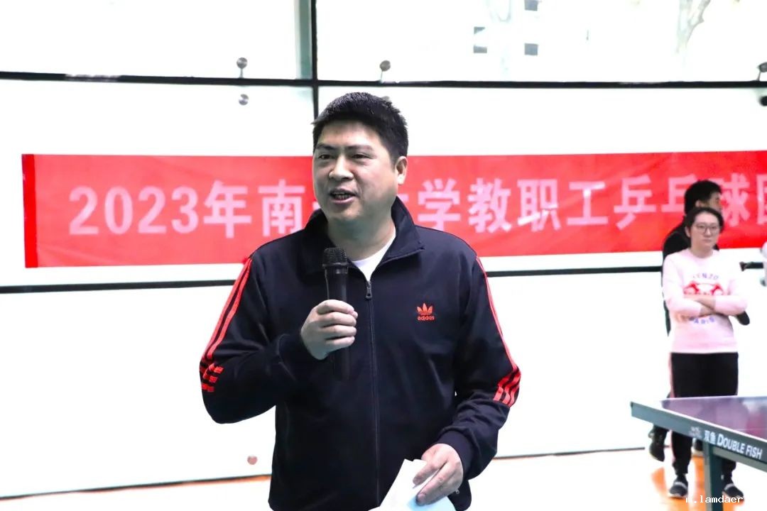 2023年11月26日,2023年南开大学教职工乒乓球团体赛在八里台校区体育馆新馆举行,南开大学教代会、工会常务副主席王成辉出席本次活动并在赛前讲话。全校各基层分会共有14支代表队参加了此次比赛,我院工会积极组织学院乒乓球队的老师们参加了此次团体赛并充分展示学院教工乒乓球队的风采。