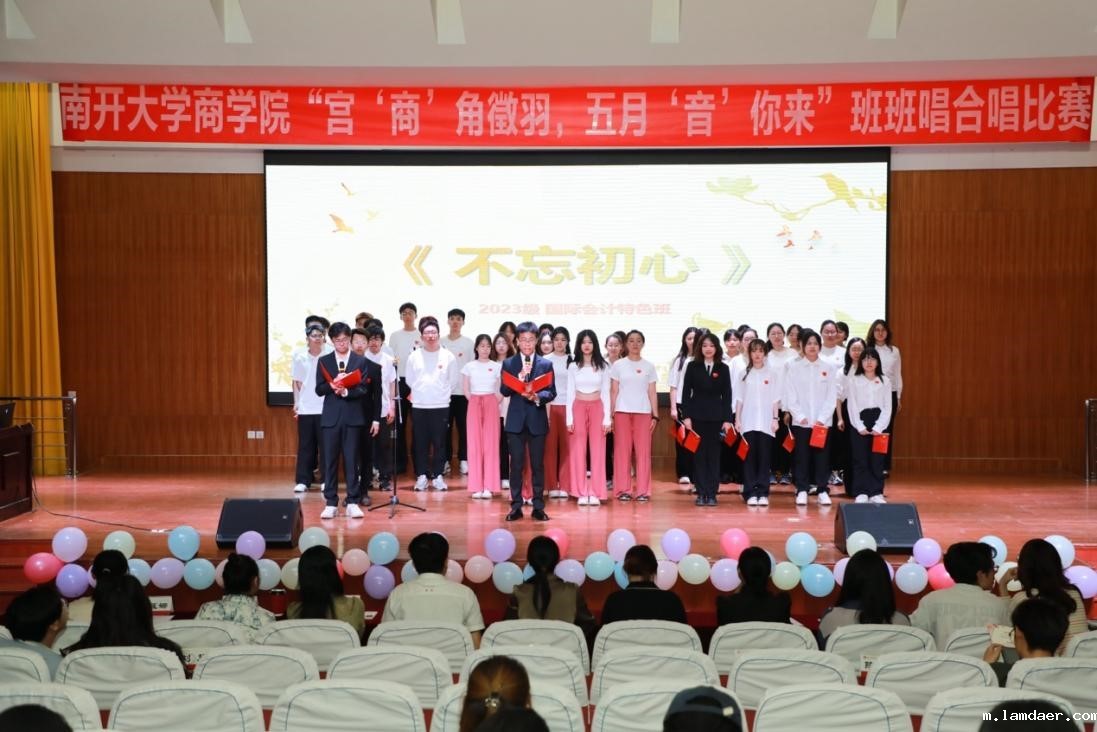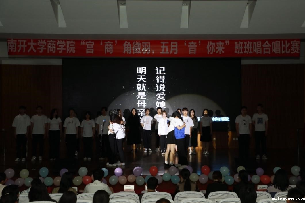 (通讯员:苏比伊努尔 王露萍 吴哲 )为认真学习贯彻党的二十大精神,为庆祝新中国成立75周年、南开系列学校建校120周年、南开大学建校105周年,以及纪念周恩来总理新中国成立后第三次视察母校65周年,南开大学商学院于2024年5月11日举办了以“宫‘商’角徵羽,五月‘音’你来”为主题的“班班唱”合唱比赛活动。本次活动旨在以音乐的力量展现青春风采,传承爱国情怀,激发南开学子的爱国热情,增强青年的使命感和责任感,凝聚班级共识与凝聚力,提升集体意识,同时展现南开大学青春活力、昂扬向上的校园文化风貌,旨在更好地引领商院学子德智体美劳五育并举。