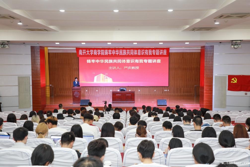 (通讯员 苏比伊努尔 王婉钰 张亮)为深入推进习近平总书记关于加强和改进民族工作的重要思想深入人心,进一步贯彻落实党中央关于铸牢中华民族共同体意识的重要工作部署和要求,5月21日,南开大学商学院邀请到中央民族大学二级教授、博士生导师、国家级人才项目入选者、全国高校首批“双带头人”教师党支部书记工作室主持人、中华民族共同体研究会副会长、国家民委决策咨询委员会副秘书长、中国民族政策学会副秘书长、中华民族团结进步协会专家委员会委员、中国民族教育专家委员会委员、中国民族理论学会常务理事、中国世界民族学会常务理事严庆教授讲授“铸牢中华民族共同体意识有我”专题讲座。
