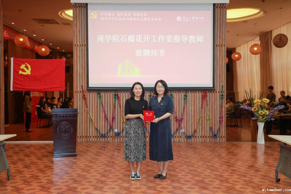 会上,李君和王坚共同为商学院石榴花开工作室揭牌,并致聘天津市少数民族学生教育管理服务工作室赵波指导教师。