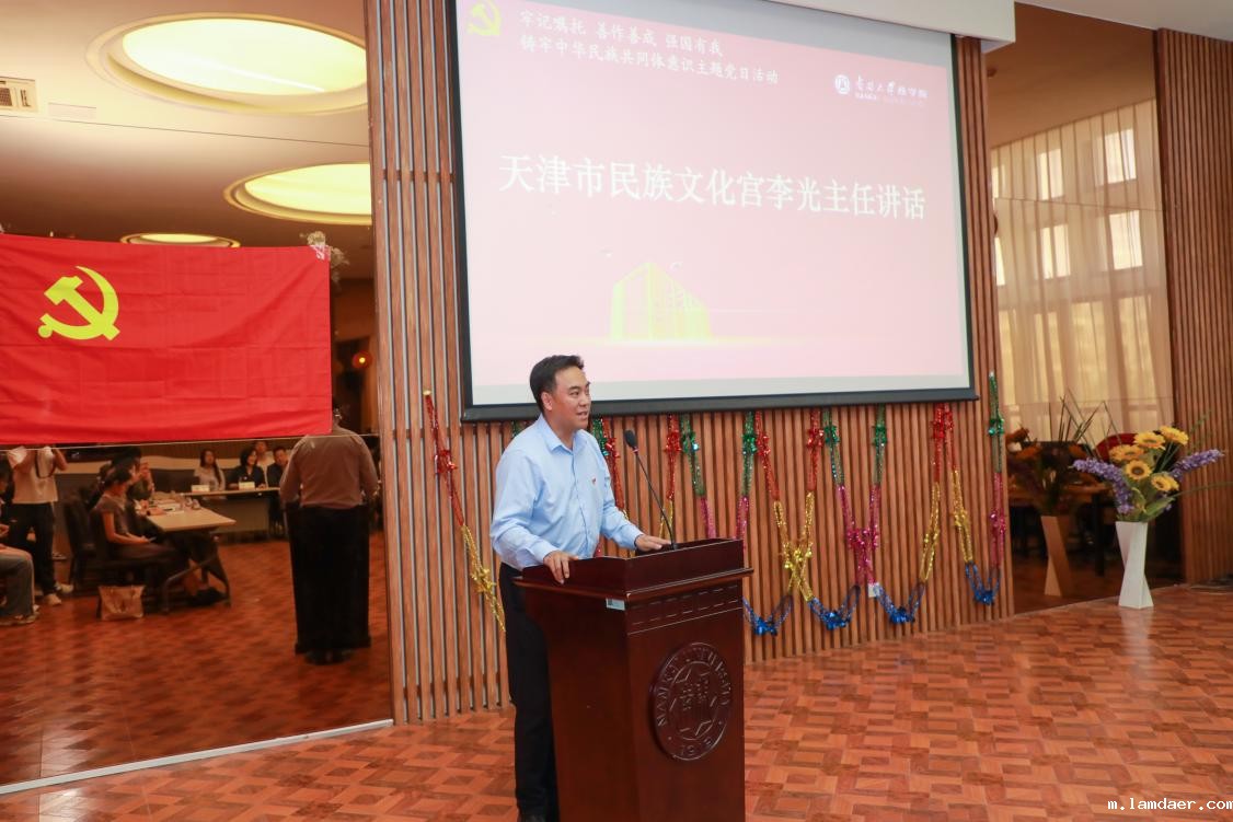 校党委常委、统战部部长李君在讲话中表示,南开大学始终致力于推动民族团结进步事业,通过与各民族师生的深入交流和紧密合作,共同营造了一个和谐稳定的校园环境。