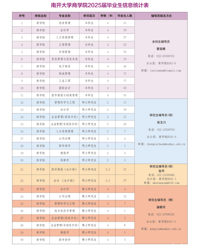 南开大学商学院2025届毕业生生源信息概况