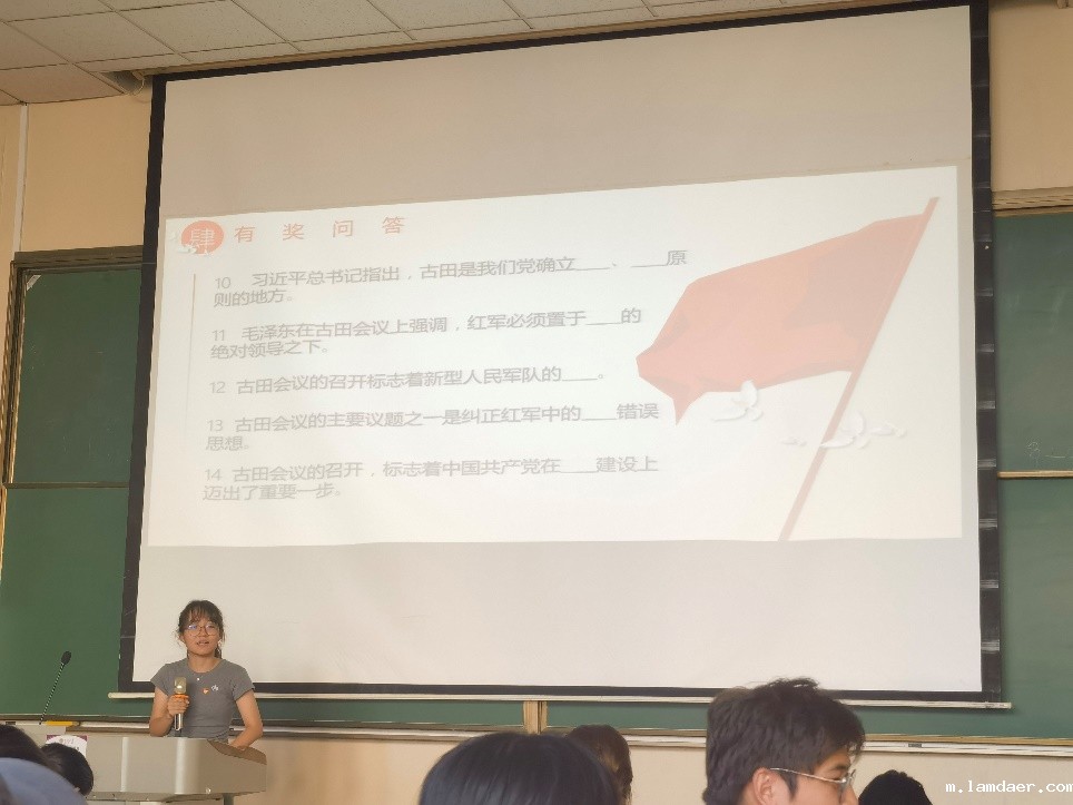 为了检验支部成员对古田会议、毛泽东思想的了解程度,本次党日本二支部郭彦彤同学还设置了有奖问答环节,让理论回归于实践。本二支部同学踊跃发言,积极参与,反响热烈。