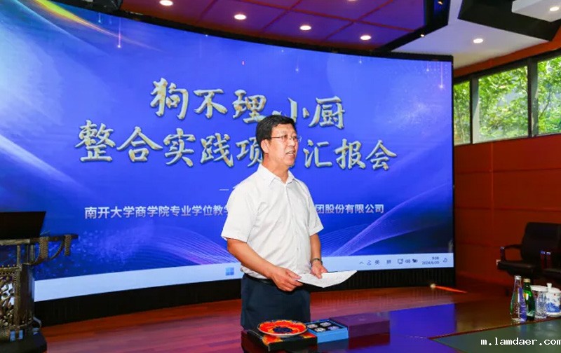 2024年6月20日上午,南开大学MBA整合实践项目(第四期)——“狗不理小厨商业模式创新”结项活动如期开启。本次活动由南开大学商学院专业学位教学中心携手狗不理集团股份有限公司(以下简称:狗不理集团)联合策划,旨在深入探讨开发狗不理小厨战略定位,设计狗不理小厨的商业模式和经营策略,帮助狗不理集团寻求新的增长点,推动老字号品牌与新业务双向赋能。南开大学商学院张金成教授,本期项目指导教师韩连胜老师、杨玉武老师,南开大学商学院专业学位教学中心副主任梁峰副教授、专业学位教学中心教学创新部主管吴薇老师、狗不理集团董事长张彦森先生、副总经理张彦明先生、党委书记于庆辉女士、副总经理耿静女士以及项目组的部分MBA学生共同参加了本次结项活动。