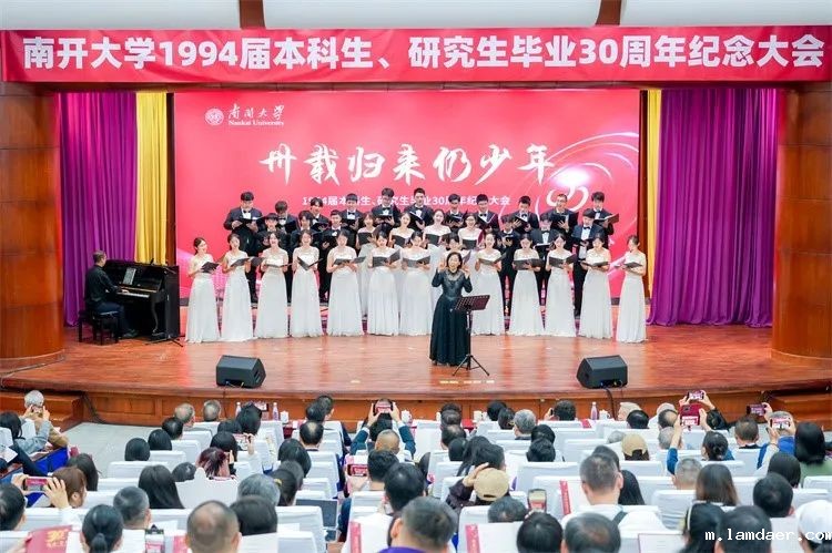 金秋十月,南开校园洋溢着喜庆的氛围,焕发出勃勃生机。南开大学建校105周年暨1994届本科生、研究生毕业30周年纪念典礼17日上午在南开大学小礼堂隆重举行。