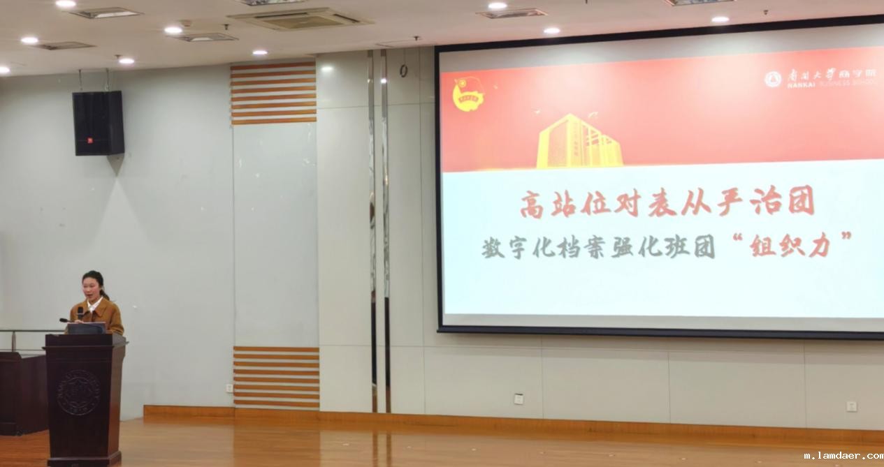 紧接着,南开大学商学院2021级图书情报与档案管理班团支书白雪娇围绕“班干领航,团心向党”这一主题,对于如何做好党建统领下的班团一体化建设做了介绍。白雪娇结合自身管理班团经验,勉励班团骨干做好思想引领,跟着党的大政方针正确前行,为强国建设贡献力量。