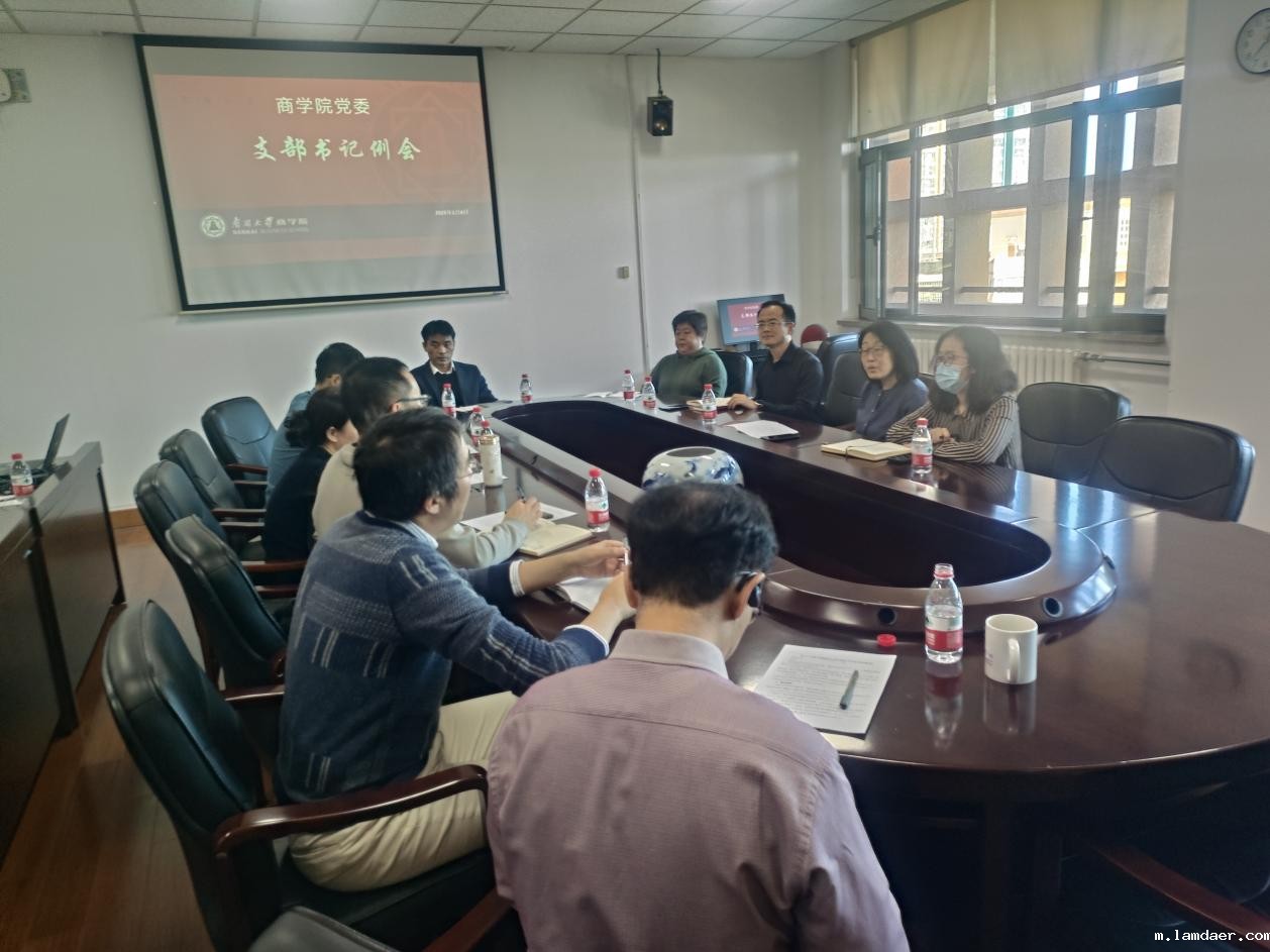 通讯员:姜忆楠 王媛媛202516中午商学院党委于815召开教工党支部书记例会,会议由党委书记王坚主持,副书记樊振佳、周翠翠与全体教工党支部书记参加会议。