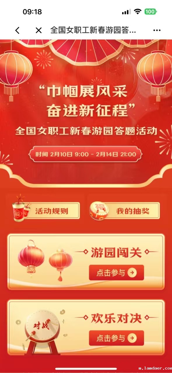 校工会通知,从2月10日(今天)上午9:00开始,在“职工之家”APP中开展全国女职工新春游园答题活动(主页流动标题新闻第二个),为期5天,参加活动可获得奖励,今年的三八节系列活动就此拉开帷幕,请女职工积极参与!