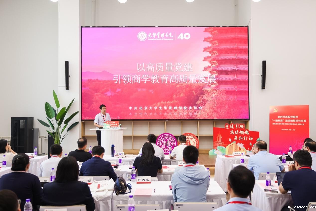北京大学光华管理学院党委书记马化祥围绕“党建引领商学教育高质量发展”作交流,介绍学院如何打造特色党建品牌、构建立体育人体系,推动“三全育人”机制落地见效。