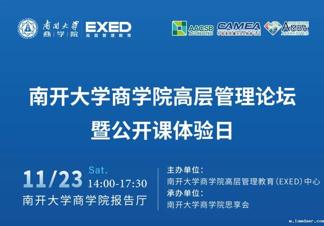 润身淑世 创赢未来 | 南开大学商学院EMBA项目发布会重磅启航南开大学商学院校友会2024年09月12日 20:05天津渤海之滨 白河之津巍巍南开润身淑世 创赢未来南开大学商学院EMBA项目聚势新生9月22日诚邀各位企业家与商业领袖莅临南开大学商学院EMBA项目发布会从南开向未来活动:南开大学商学院EMBA项目发布会时间:2024年9月22日 周日 14:00(13:30签到)地点:南开大学商学院A1049月22日,润身淑世 创赢未来|南开大学商学院EMBA项目发布会重磅开启!届时,南开大学商学院EMBA项目将发布全新的项目设置、教学特色及招生政策,同时学院教授、业界专家将与大家共聚一堂,带来主题公开课、经验交流、政策解读,带您全方位、多视角领略南开大学商学院EMBA项目的魅力风采,干货满满让您不虚此行!诚邀莅临,欢迎扫码报名预约席位,9月22日相约南开,创赢未来!百年南开,百年商科1919年,著名教育先驱张伯苓、严修创办了南开大学。南开大学是教育部直属重点综合性大学,是国家“985工程”和“211工程”重点建设的综合性研究型大学,并于2017年入选国家“世界一流大学和一流学科”高校